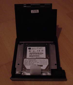 :-) es ist ein dünner Blechrahmen, in den die HD eingeschraubt wird und